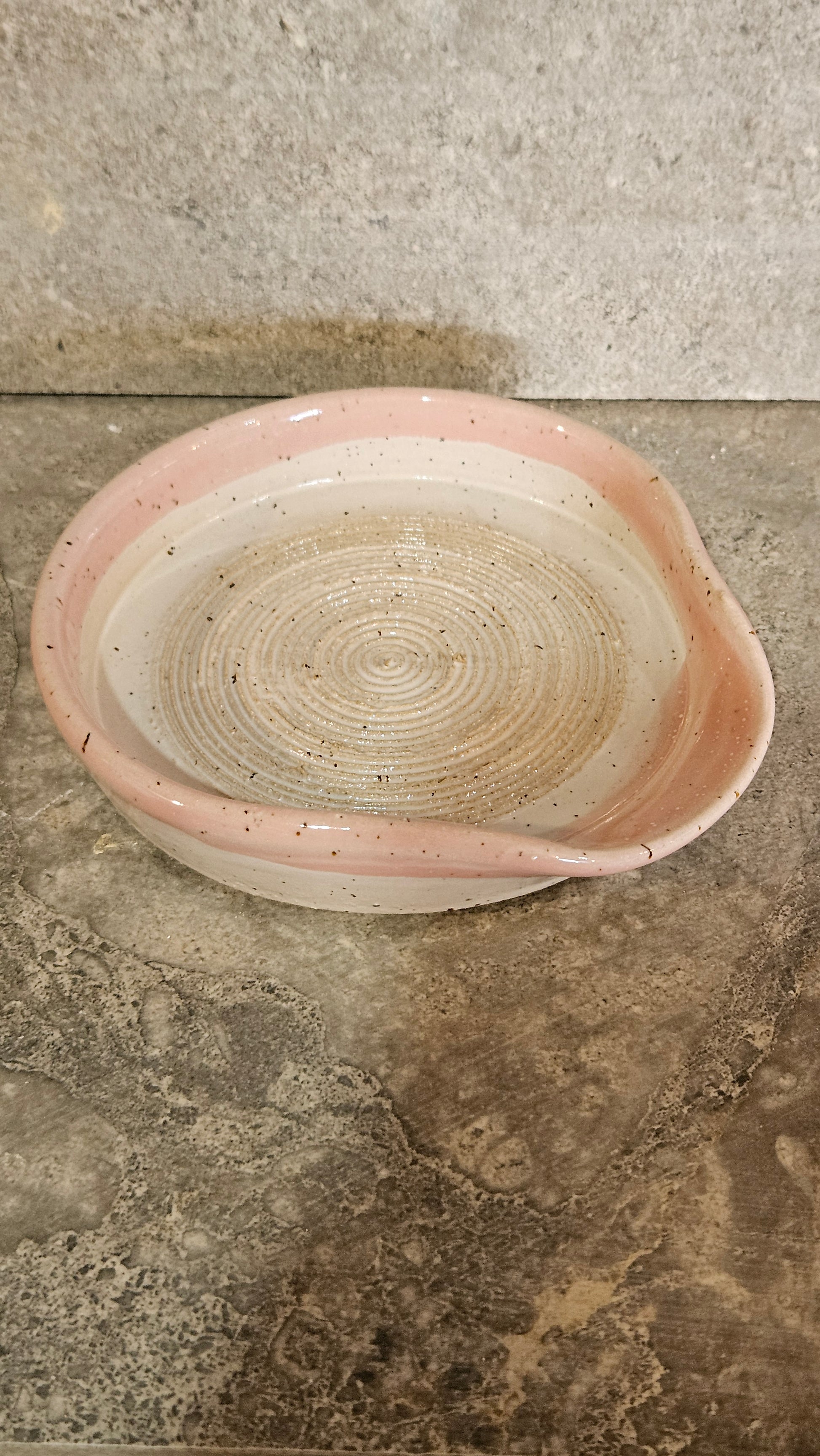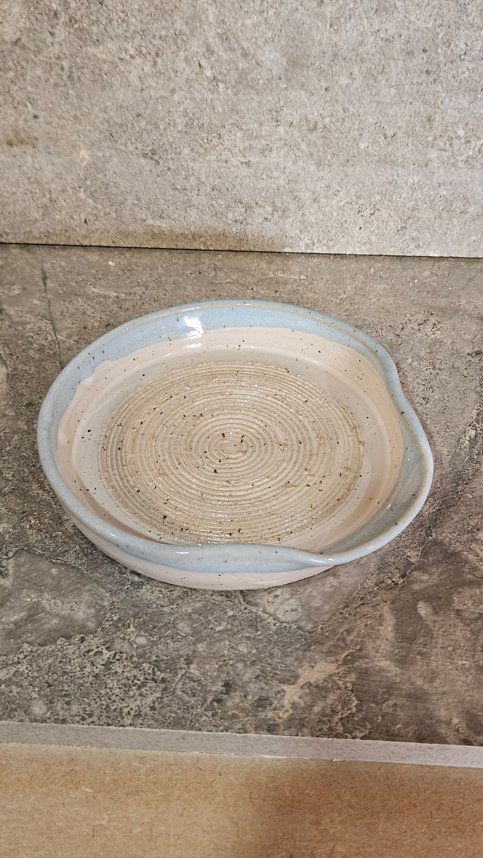 Wheel thrown out of stoneware clay, they are then carved to give sharp edges for grating. (Mind your fingers!!)