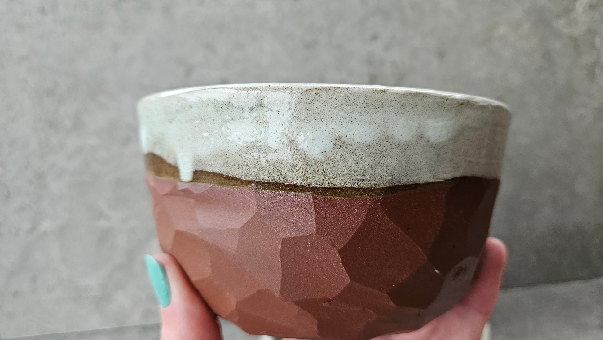 Handcrafted by me in my home studio, each of these stunning faceted bowls is perfectly unique with a hand cut texture that makes them a joy to use and hold.